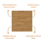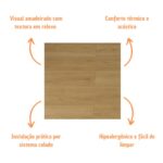Desse modo, esse piso vinílico colado é indicado para área residencial como sala de estar, quarto e escritório, agregando um alto conforto térmico e acústico, além de ser resistente à umidade e fácil de limpar.