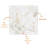 Esse Porcelanato Rox dispõe de uma estampa em mármore branco que otimiza a estética do ambiente e valoriza o imóvel, podendo ser facilmente combinado com diversos tipos de revestimentos e acessórios.