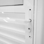 Por fim, a porta de giro de alumínio da Lux Esquadrias acompanha puxador e componentes de montagem.