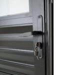 Por fim, esse equipamento tem sistema de abertura de giro, que é o mais tradicional por conta de sua funcionalidade e praticidade de uso. Sua abertura é do lado esquerdo com fechadura de embutir com perfil estreito e maçaneta do tipo Alavanca com cilindro da marca 3F.