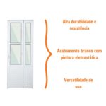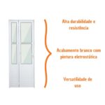 Ao mesmo tempo em que otimiza o espaço, essa porta camarão branca proporciona beleza à casa com seu acabamento em lambril e vidro. Embora seja indicado para áreas internas, o produto tem pintura eletrostática, que protege o alumínio contra ferrugem, umidade e pragas.