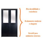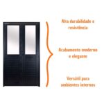 Ao mesmo tempo em que deixa o espaço mais bonito, a porta lambril preta se destaca pelo ótimo custo benefício por conta da durabilidade do material, estrutura resistente e fácil higienização.