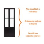 Fabricada em alumínio e com um acabamento fosco preto, essa porta possui um design moderno que se adapta a diversos estilos de decoração.