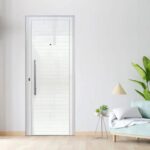 Essa porta é fabricada em alumínio de alta durabilidade e resistência, com acabamento em pintura eletrostática na cor branca que confere um design moderno e sofisticado ao ambiente.