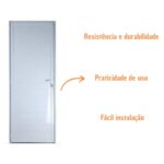 A porta lambril sem puxador 210x80cm da Esquadritop é essencial para quem está buscando uma porta de alta qualidade e durabilidade para o seu ambiente. Ela é produzida em alumínio, um material amplamente conhecido pela sua resistência contra intempéries e impactos do dia a dia, garantindo assim uma longa vida útil ao produto. Com acabamento brilhante, essa porta lambril branca​ acompanha batente e fechadura do tipo maçaneta/cilindro, oferecendo maior comodidade na utilização.