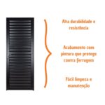 Com medidas de 210x70cm, 4,5cm de espessura e batente de 4,5cm de largura, esse produto fabricado em alumínio é indicado para banheiros, lavanderias e cozinhas devido a sua resistência à umidade e facilidade de limpeza, que deve ser feita com água e sabão neutro.