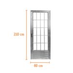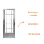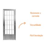 Com acabamento em alumínio natural, essa porta possui um design moderno que se encaixa perfeitamente em salas, cozinhas, banheiros, lavanderias e áreas de serviço.