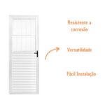 Fabricada em alumínio branco resistente à corrosão, a porta de alumínio possui postigo basculante integrado, permitindo controlar a entrada de ar mesmo com a porta fechada.