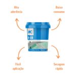 Em relação ao tempo de secagem recomenda-se aguardar de 60 a 90 minutos para o assentamento de argamassas colantes.Assegurando sempre o compromisso com a qualidade, essa D15 não carrega solventes na sua composição.