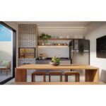 Em projetos como o revestimento para área gourmet, é muito importante a escolha correta do rejunte. Ambientes sujeitos à umidade (revestimento para banheiro: vapor d’água) e gordura (revestimento para cozinha: respingos de comida, restos de sujeira no lavar das louças) é recomendado o uso de uma tipologia de rejunte impermeável, acrílica. O rejunte resinado branco da Kerakoll é ideal para aplicação de revestimento branco e facilita a manutenção do dia-a-dia na limpeza dos ambientes.