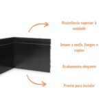 Ele proporciona o acabamento entre a parede e o chão, deixando o ambiente ainda mais sofisticado. Além disso, você conta com a liberdade de adquirir o produto nas cores branca ou preta, também nas seguintes medidas: