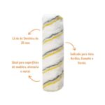 Composto de fibra de poliéster, este rolo de 23 cm é ideal para aplicação de tinta acrílica, esmalte e verniz em superfícies como alvenarias, madeira e metais.