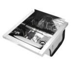 Fabricado em aço Inox, esse tanque Docol possui 47 cm de comprimento, 44 cm de largura e capacidade para 23 litros.