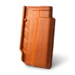 Com um acabamento resinado, essa telha possui 40,6 cm de comprimento e 23,9 cm de largura e um tom avermelhado.