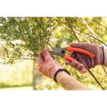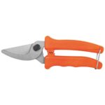 O cabo plástico, na cor laranja, proporciona empunhadura confortável, firme e segura, reduzindo o esforço durante o uso. Indicada para jardinagem, é perfeita para a manutenção de plantas, arbustos e pequenos galhos.