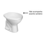 O vaso sanitário convencional Izy mede 38 cm de altura, 37,5 cm de largura e 47,5 cm de comprimento, é produzido no formato oval tradicional com sifão aparente na cor branca.