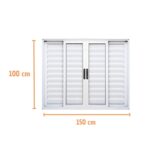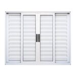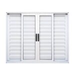 Essa janela veneziana dispõe de 6 folhas com sistema de abertura por deslizamento horizontal, com duas folhas fixas e quatro móveis, sendo duas de vidro. Sua estrutura possibilita um manejo fácil e prático, intercalando a abertura e fechamento da janela de forma rápida e instantânea.