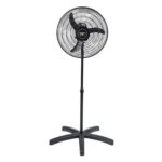 Com estrutura resistente e base ajustável, o modelo permite regulagem de altura e ângulo de inclinação, facilitando o direcionamento do ar conforme a necessidade. A grade de proteção metálica e o acabamento em preto conferem modernidade e segurança, além de fácil integração com diferentes estilos de ambiente.